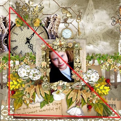А теперь посмотрим, как данное правило применяется в скрапбукинге. Вот работа с самой что ни на есть классической раскладкой:
