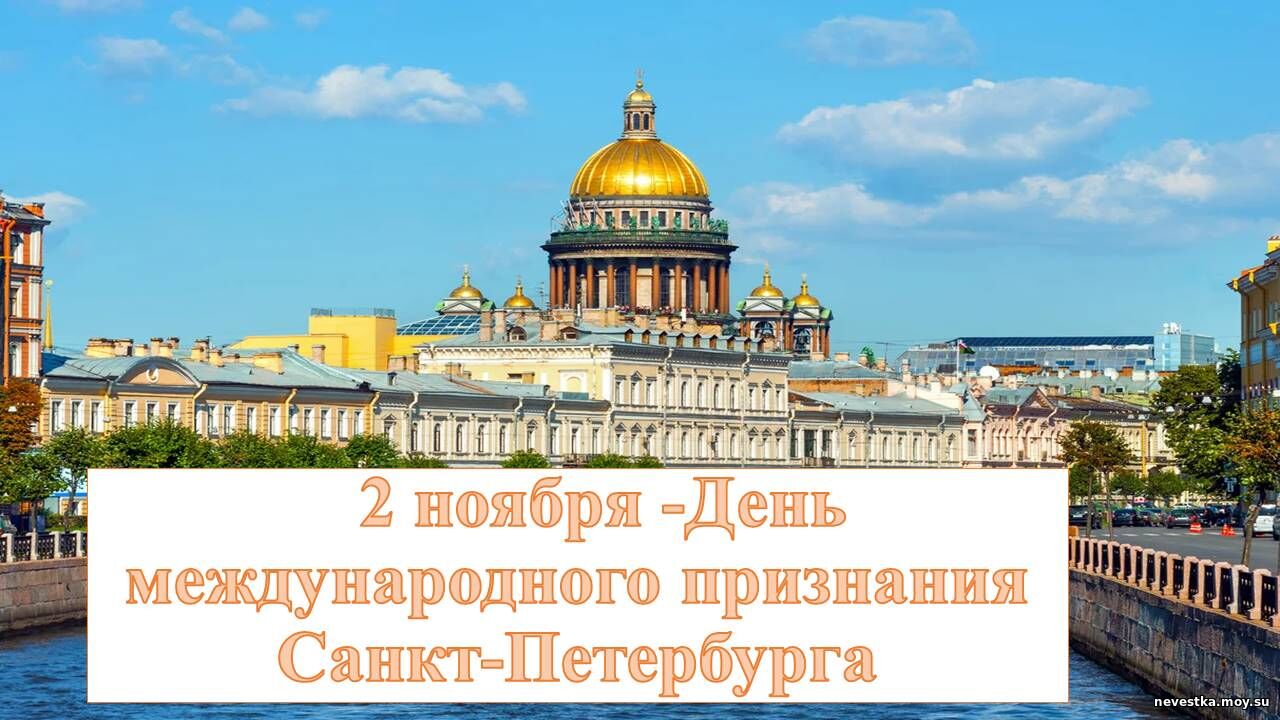 Отмечается 22 октября (2 ноября по новому стилю) 1721 года. В этот день, после победы в Северной войне, российский царь Пётр I принял титул Императора Всероссийского, и Россия была провозглашена империей. Этот титул подчёркивал статус России как великой державы и ознаменовал начало нового этапа в её истории. 3. День международного признания Санкт-Петербурга Праздник связан с историческим событием 1721 года: принятием Петром I титула императора, что закрепило статус России как великой державы, а ее новой столицы — как мирового центра.