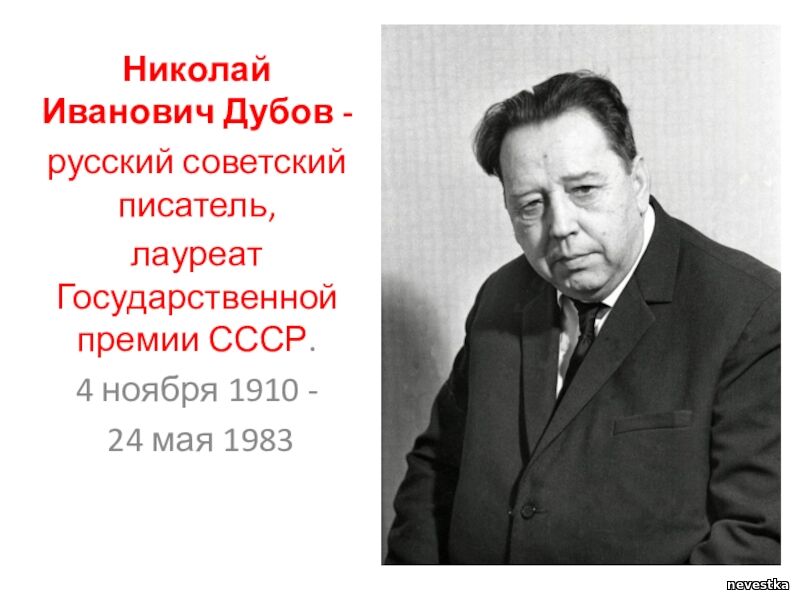 Литературные именинники: 4 ноября – 115 лет со дня рождения советского писателя Николая Ивановича Дубова (1910-1983).